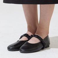 메리제인 세미 스퀘어라인 플랫 슈즈 - 블랙