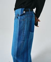 콘트라스트 더블-워싱 와이드 데님 팬츠 (블루)