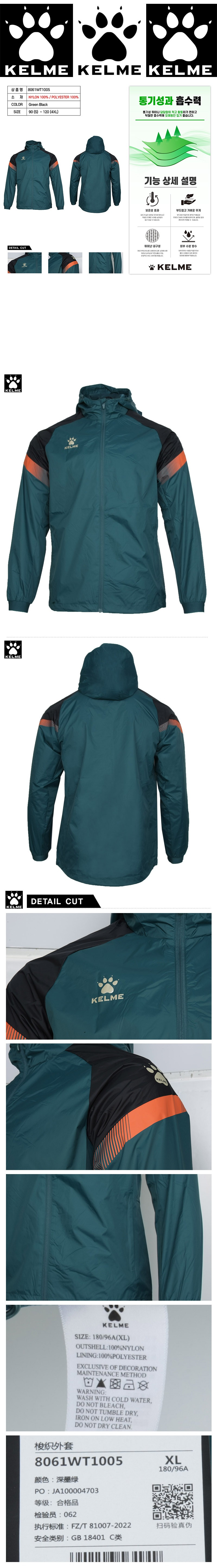 8061WT1005 성인 트레이닝 바람막이 그린 블랙