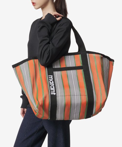 와덴 스트라이프 나일론 토트백 - 오렌지:멀티컬러 / PP0020FAA1X17MMUOR
