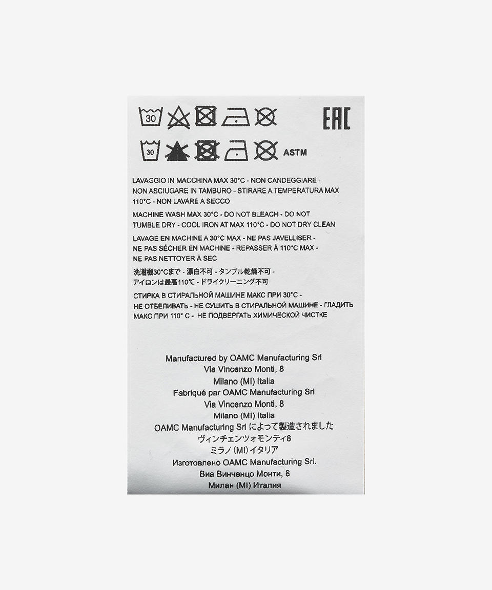 오에이엠씨(OAMC)는 2013년 칼하트 WIP와 슈프림 출신의 디자이너 듀오가 설립한 브랜드입니다. Over All Master Cloth의 약자인 OAMC는 자기표현이라는 주제 아래 만들어졌습니다. 음악, 미술, 영화, 사진 등 다양한 예술에서 영감을 받아 스트릿, 워크 웨어와 밀리터리 요소를 프리미엄 디자인에 녹여내 오래 입을 수 있는 질 좋은 제품을 제공합니다.