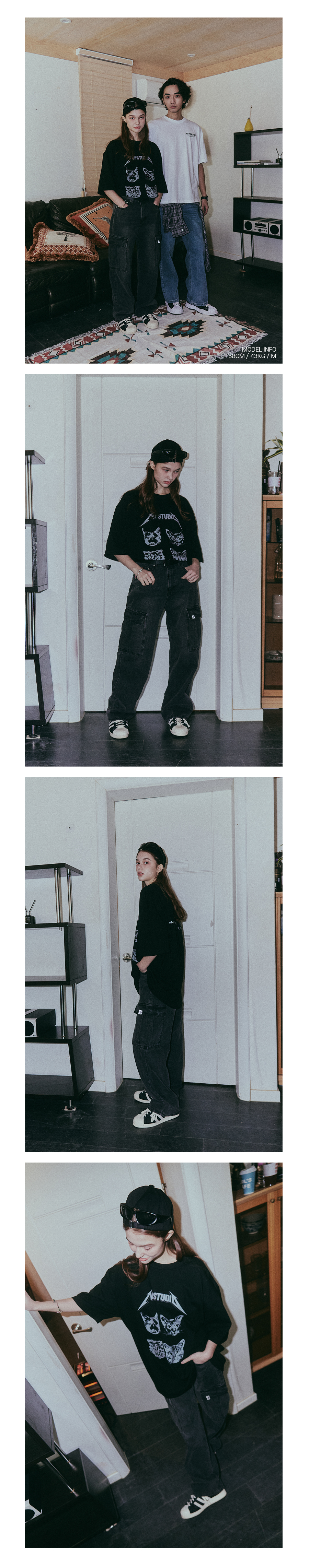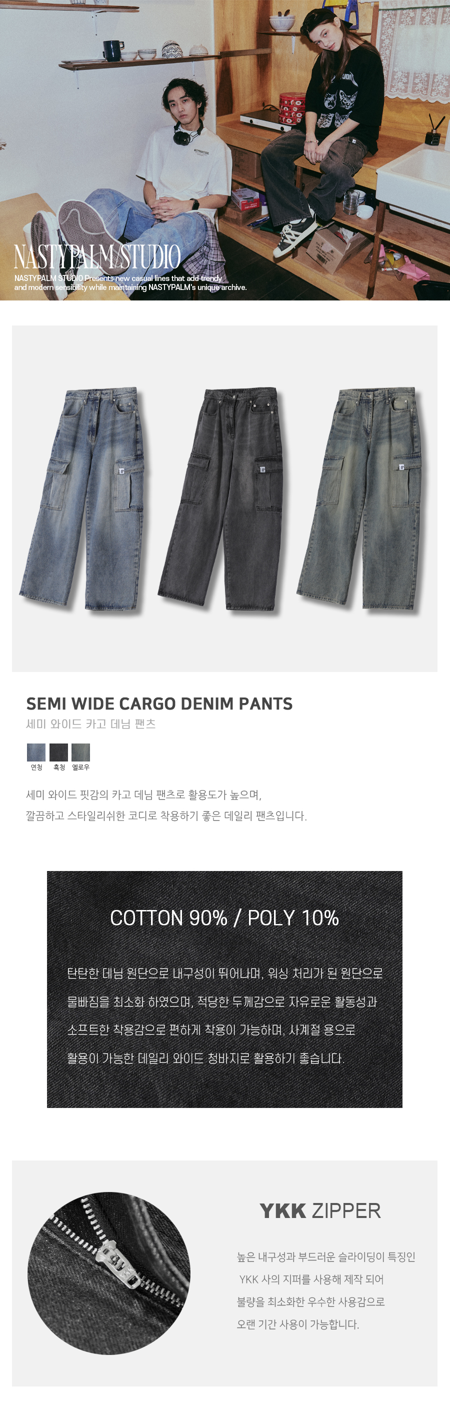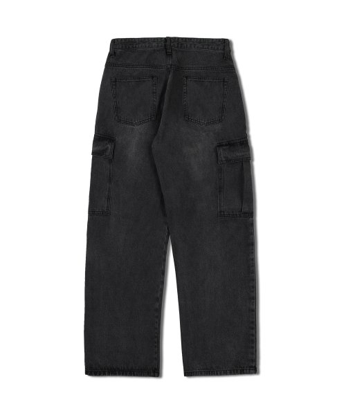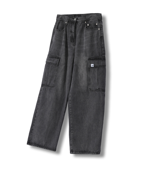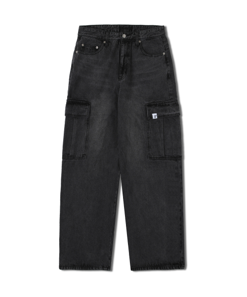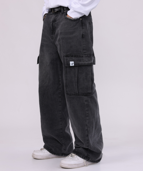 세미 와이드 카고 데님 팬츠 흑청