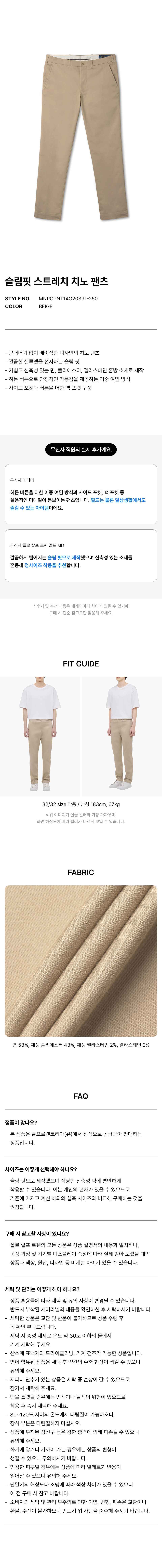 슬림핏 스트레치 치노 팬츠 - 베이지