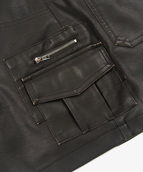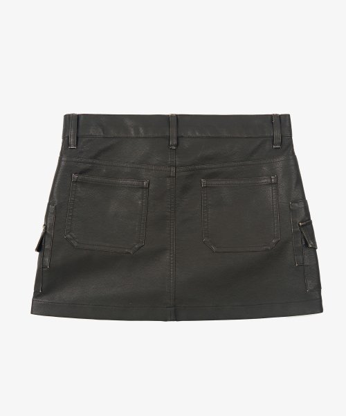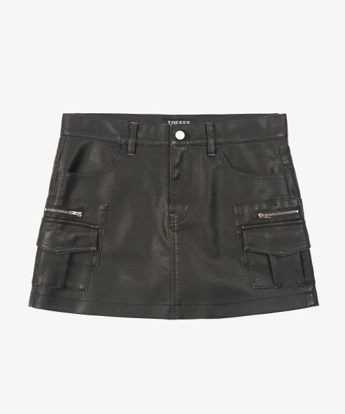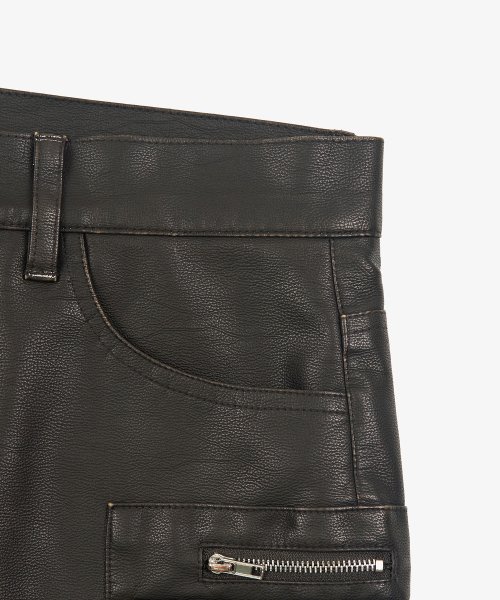 W 워시드 PU 레더 미니 스커트 (DARK BROWN)