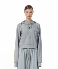 SCRIPT LETTERING ONE SHOULDER HOODED_BLACK