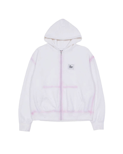 SPRAY PRINTED ZIP UP HOODY (WHITE)