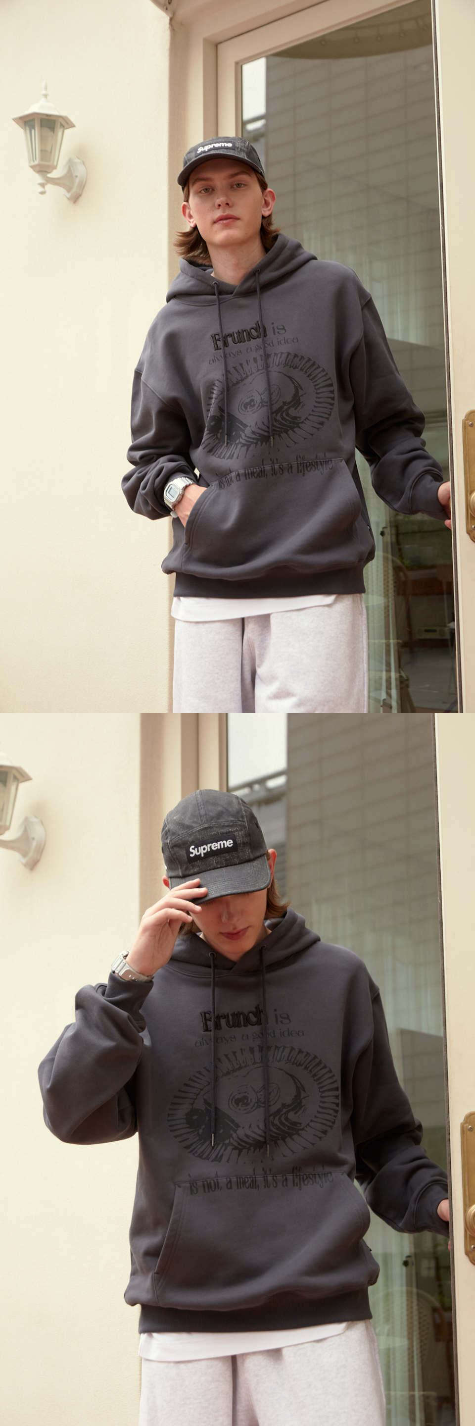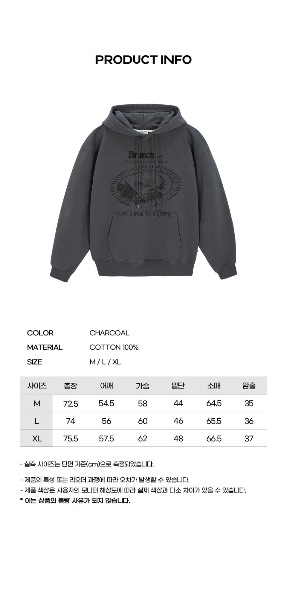 모노 브런치 후드티 [차콜]