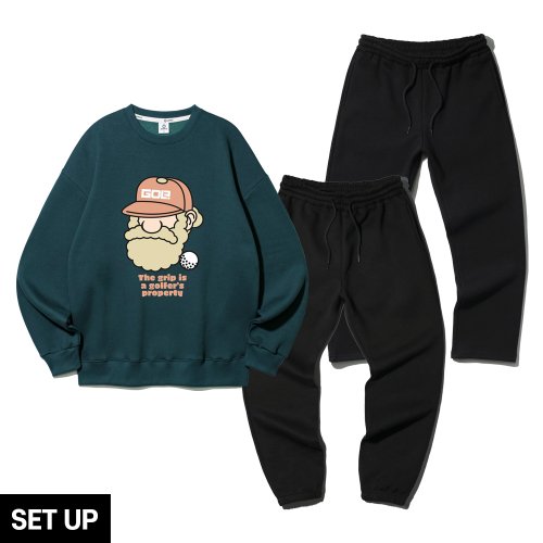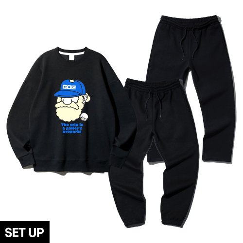 [SET] 마틴 골프 그립 오버핏 맨투맨 조거/세미와이드 팬츠 셋업