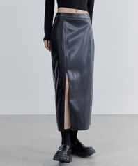 우먼즈 신세틱 레더 슬릿 롱 스커트 [블랙]