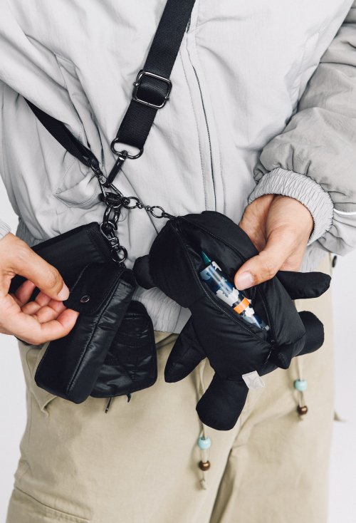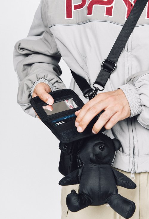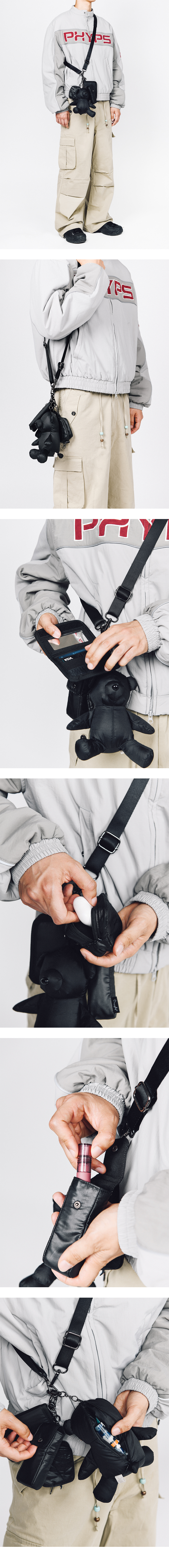 베어 키링 나일론 멀티 포켓 크로스백 (M)_블랙