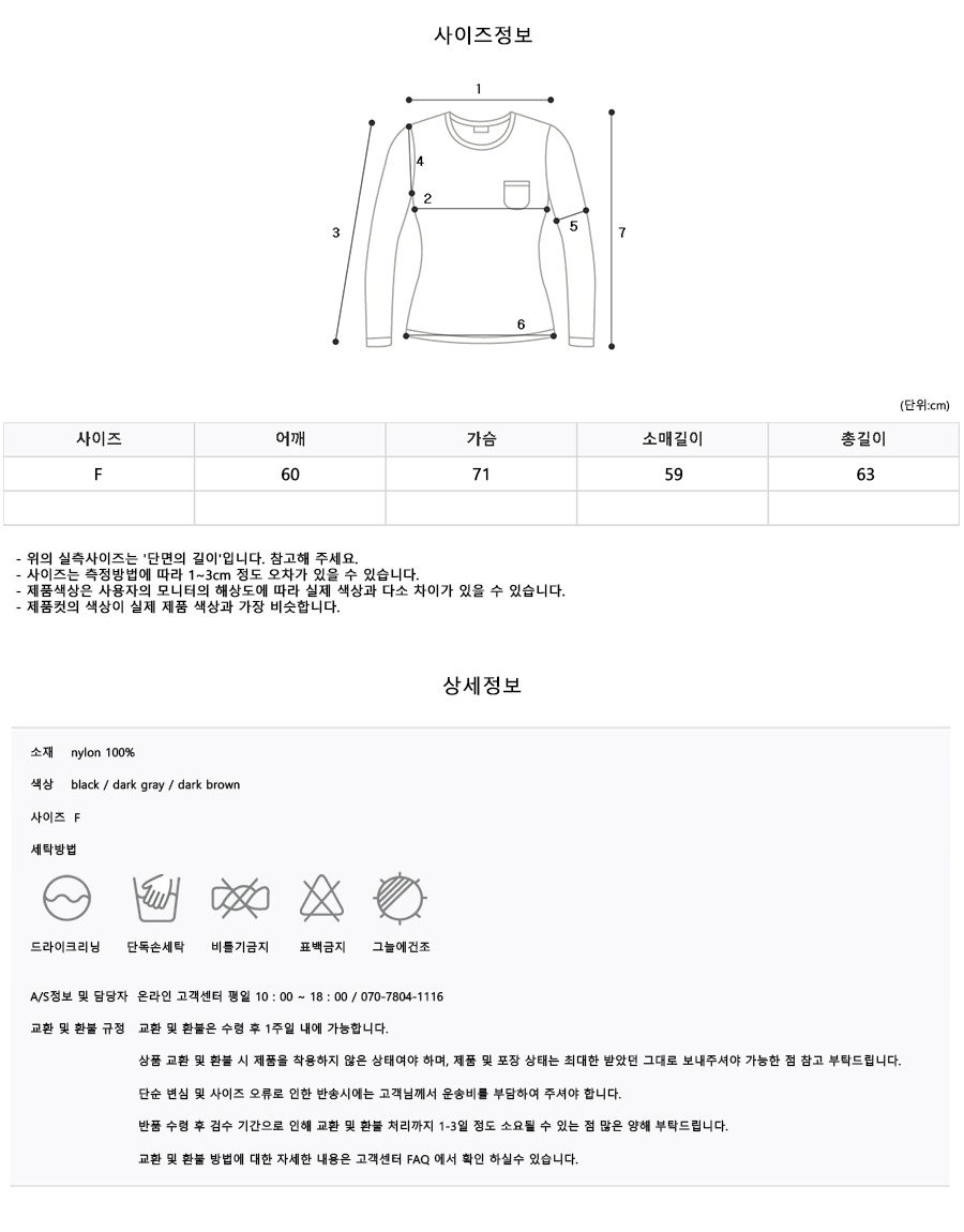 F - 어깨 60 / 소매 59 / 가슴 71 / 총기장 63