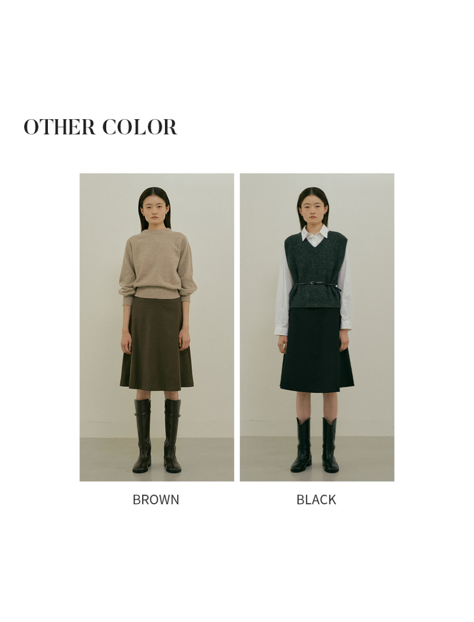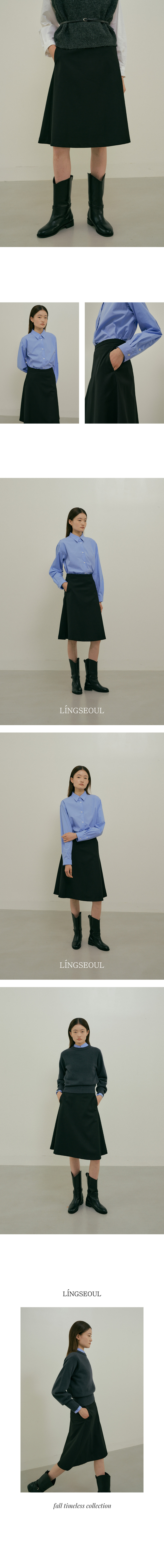 허리 라인 아래로 자연스럽게 주름지는 플레어 디자인이 포인트인 스커트입니다. 울 혼방 소재로 무게감 있게 떨어지면서 보온성이 높으며 스커트 안쪽은 안감 처리로 편안하게 착용이 가능합니다. 밴딩 없이 뒷 콘솔 지퍼로 깔끔한 허리 라인이 연출됩니다.