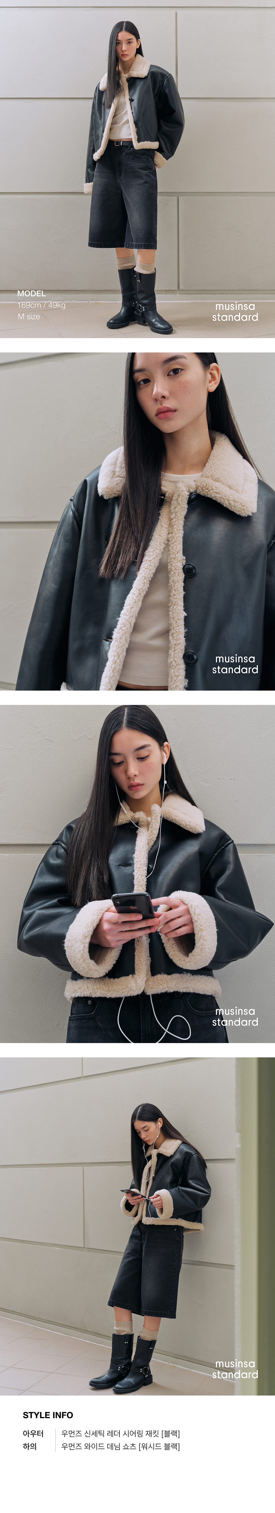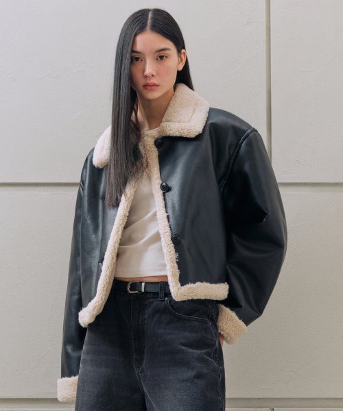 우먼즈 신세틱 레더 시어링 재킷 [블랙]