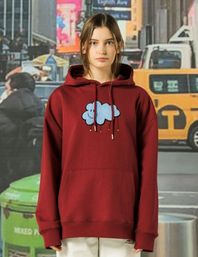 클라우드 부클 자수 오버핏 후드_버건디