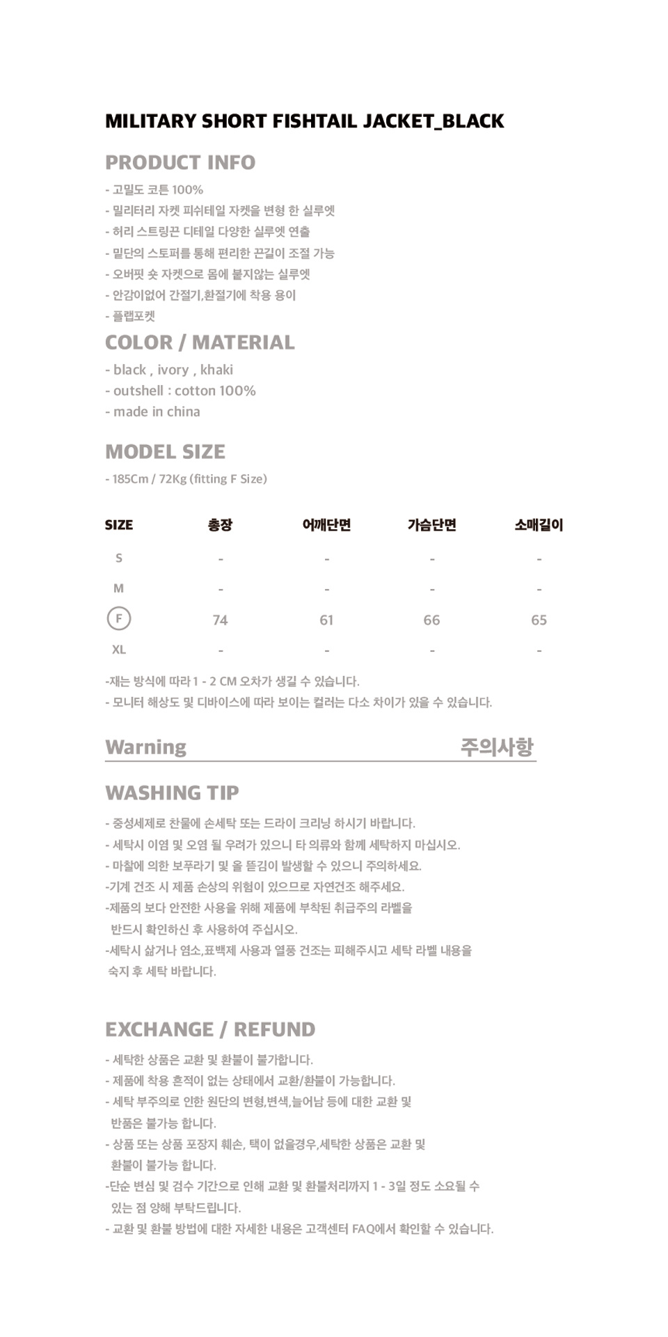 MILITARY SHORT FISHTAIL JACKET_BLACK