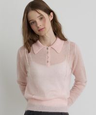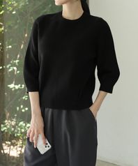 라운드넥 핀턱 7부 퍼프소매 니트 티셔츠