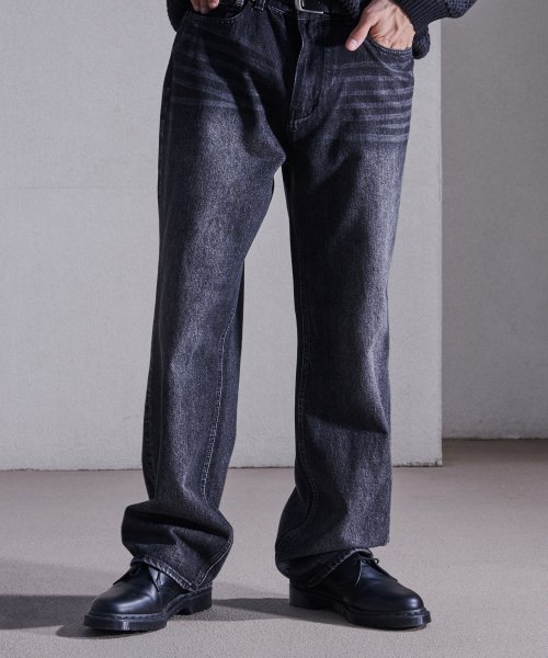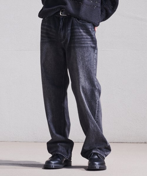 IN#0141 올브러쉬 블랙 워싱 스트레이트 와이드