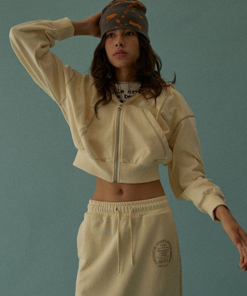 카루도 3204A 루즈핏 크림 크롭 후드집업