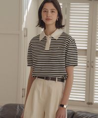 아이비 스트라이프 라운드 롱슬리브 티셔츠 그레이