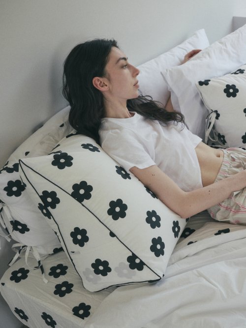 블랙 플라워 고밀도 순면 삼각 등쿠션 커버