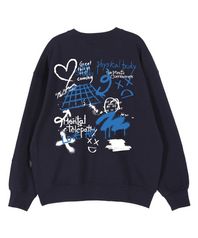 그라피티 오버핏 드롭숄더 맨투맨_네이비