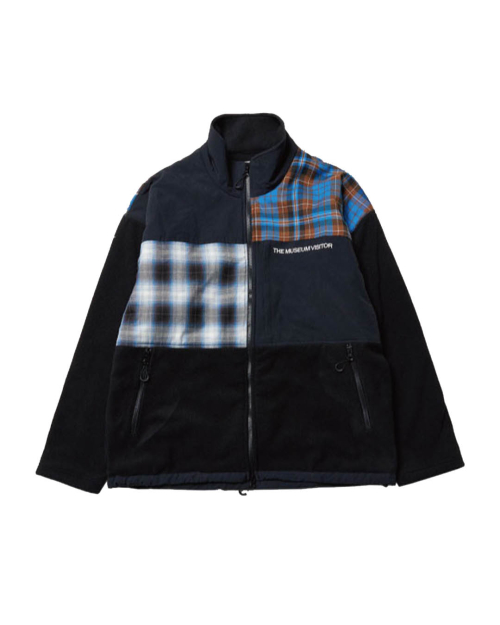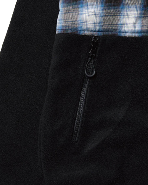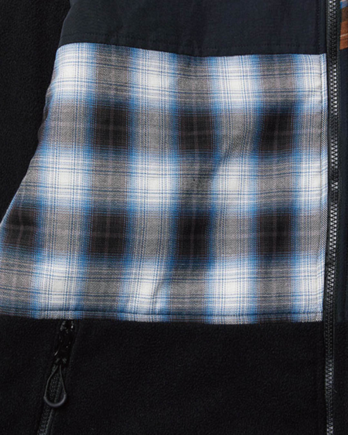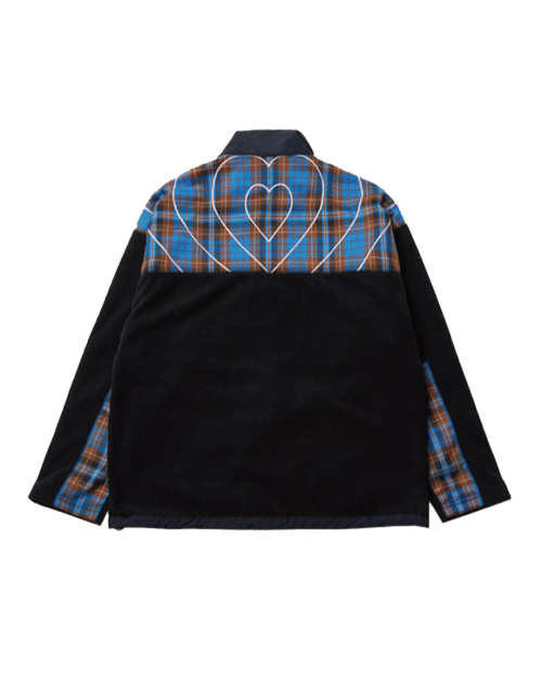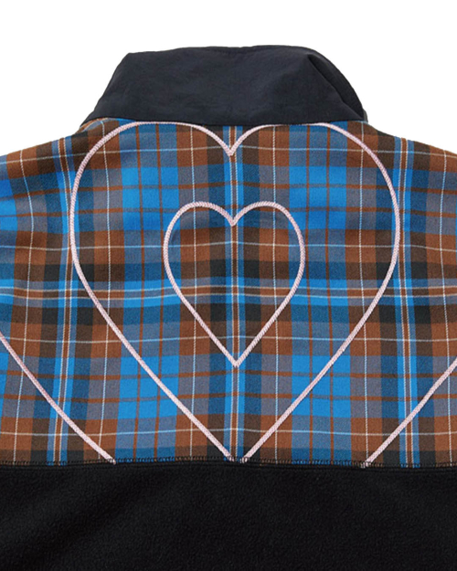 HEART STITCHED CHECK FLEECE JACKET (BLACK)