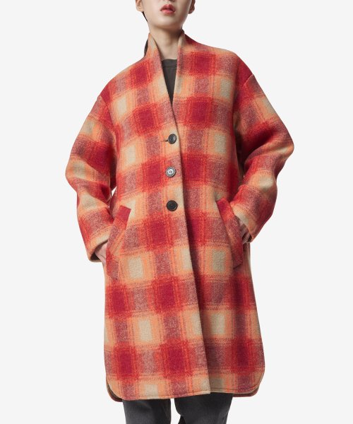 가브리엘 체크 울 코트 - 오렌지 / MA0019FAA3D27E11OR