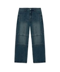 브러쉬 워시드 패널 데님 팬츠 [미드블루]