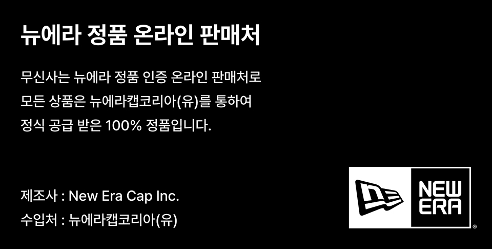 NEW ERA(뉴에라)는 미국 버팔로에 본사를 두고 있는 모자 제조 업체이자 브랜드로 1920년 에르하르트 콕(Ehrhardt Koch)에 의해 설립되었으며 현재 북미 3대 스포츠 리그(MLB, NBA, NFL)의 공식 선수용 모자를 공급하고 있습니다. 이외에도 약 200여 개가 넘는 미국 대학 스포츠 팀 및 다양한 해외 스포츠 리그에도 선수용 캡을 공급하고 있습니다. 뉴에라는 모자와 스트리트 감성 넘치는 성인 어페럴, 백팩등의 액세서리 라인을 보유한 글로벌 브랜드입니다.