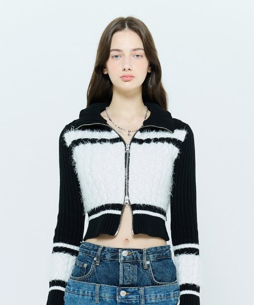 L6 COLORBLOCK KNIT ZIPUP(IVORY)