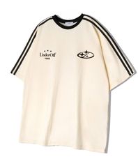 오버핏 트랙 라인 반팔 티셔츠 스타로고 크림