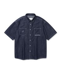 화이트 스티치 데님 하프 셔츠
