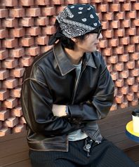 빈티지 워싱 레더 자켓 [브라운]