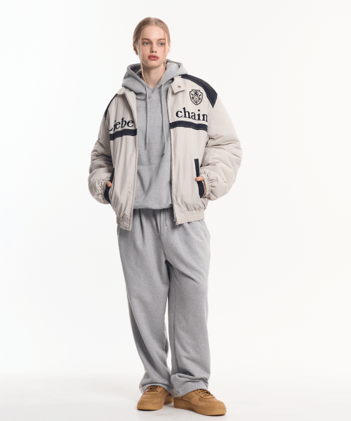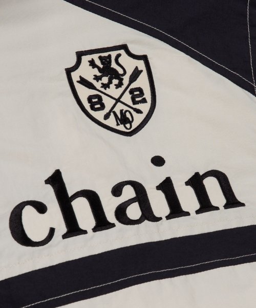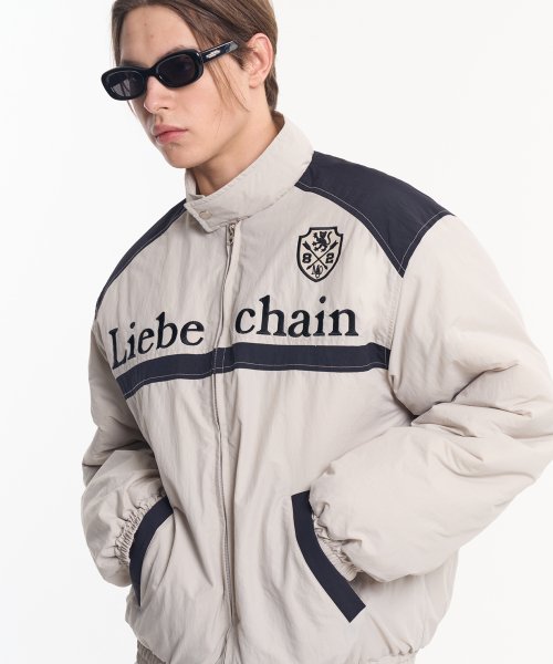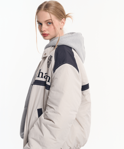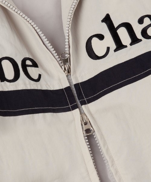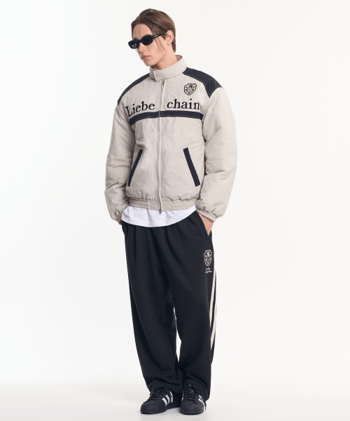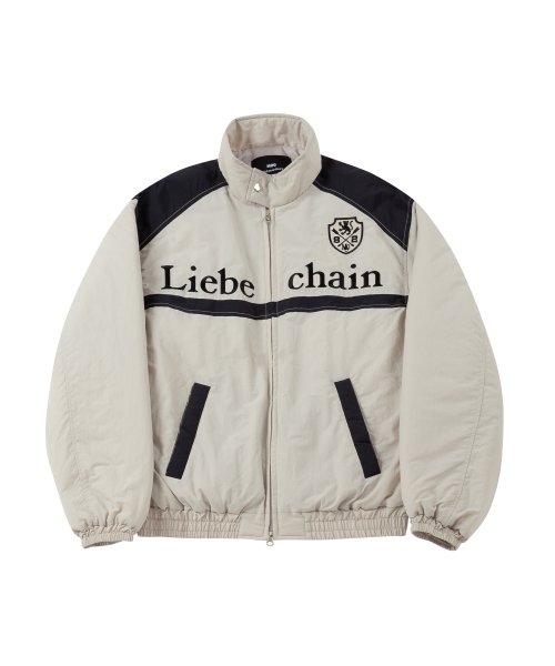 나일론 자수 배색 레이싱 자켓 - 베이지