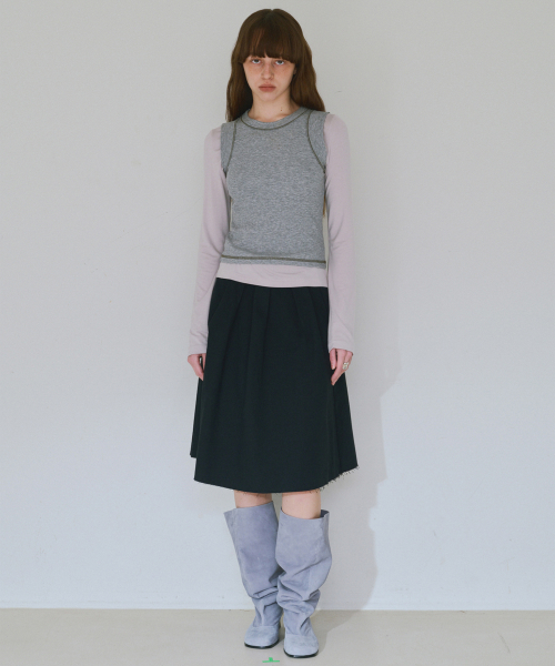 컷오프 플리츠 스커트 [블랙]
