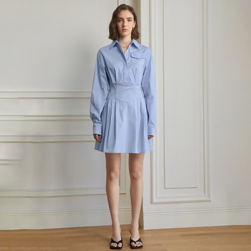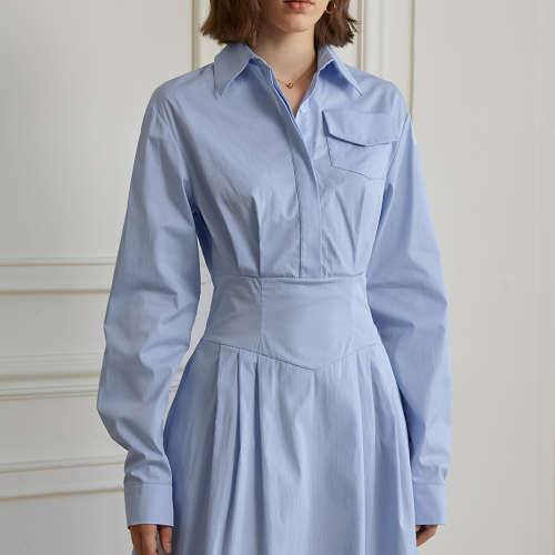 YY_Pocket slim waist shirt dress