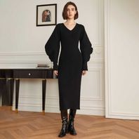 YY_Lantern sleeve slim knit dress