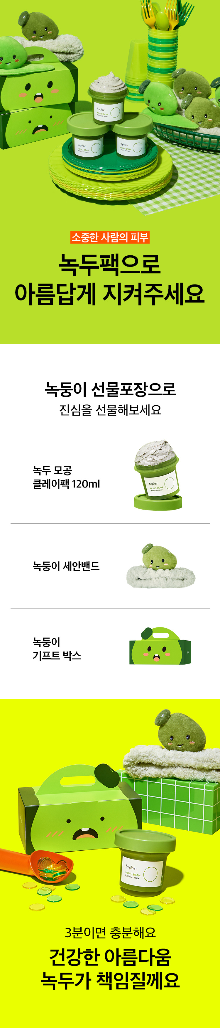 [세안 밴드 포함]녹두 모공 클레이 팩 세트