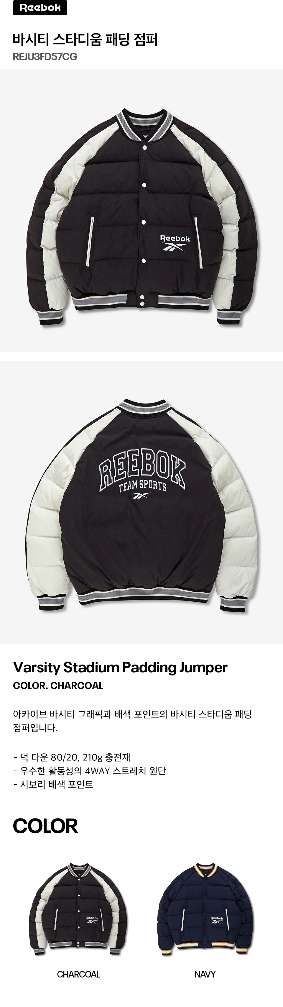 바시티 스타디움 패딩 점퍼 - 차콜