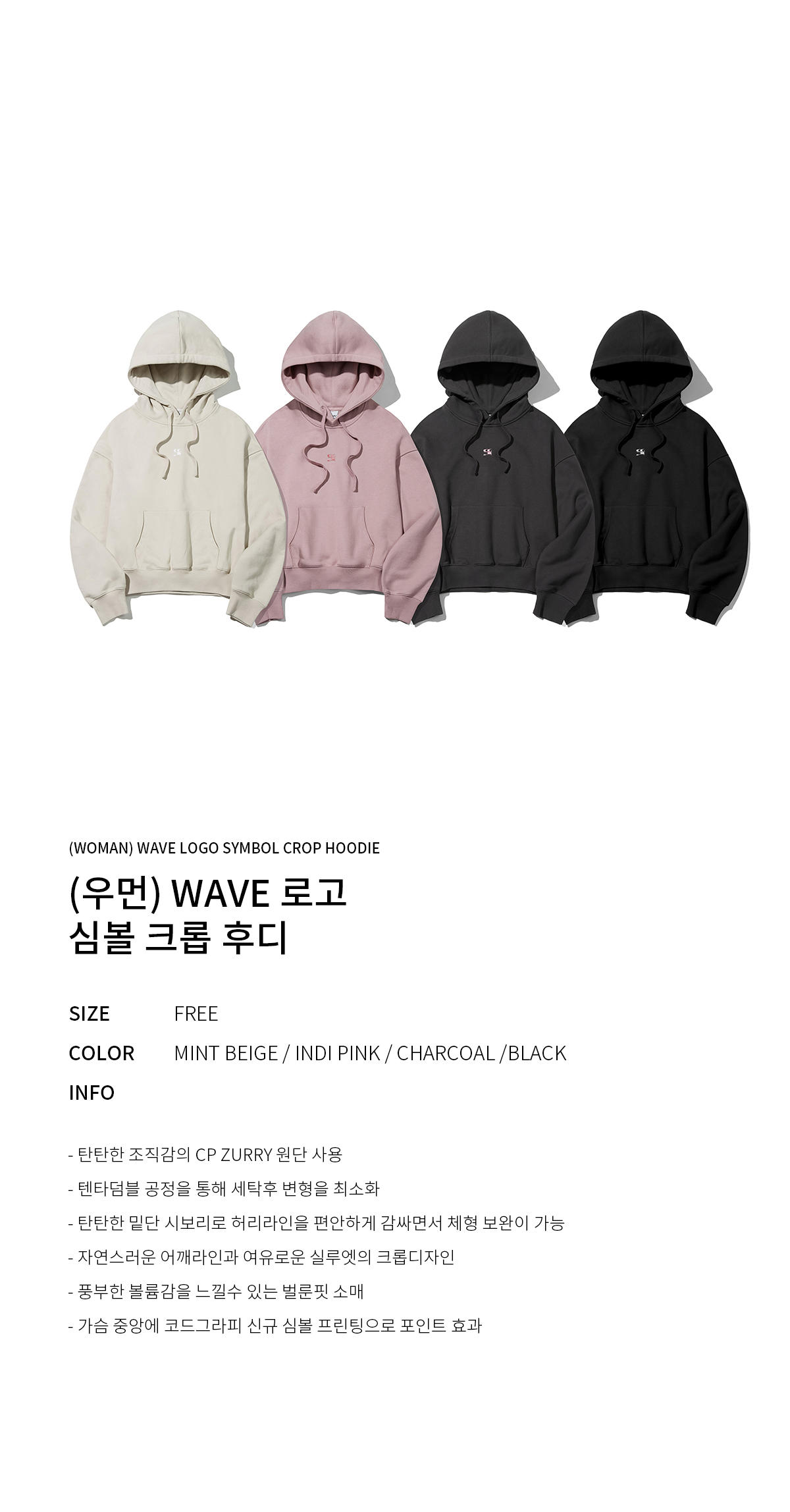 (우먼) WAVE 로고 심볼 크롭 후디_4color