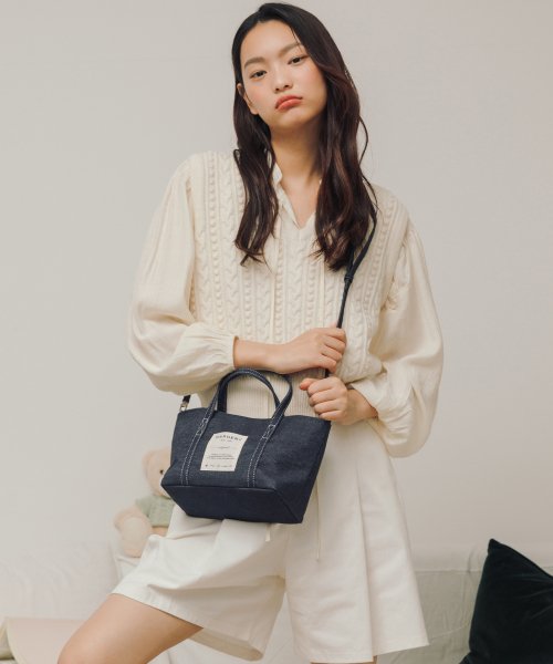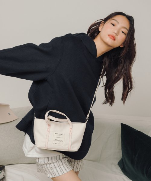 보송 스트라이프 패딩 쇼퍼 숄더백
