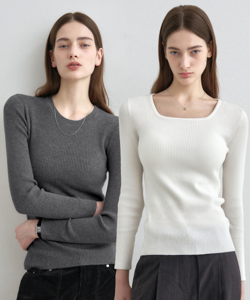 [2PACK] 슬림 골지 니트 - 스퀘어/터틀넥/라운드