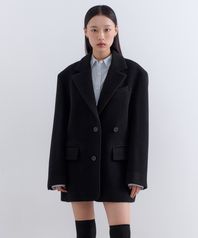 우먼즈 울 블렌드 볼륨 멜톤 오버 숄더 블레이저 코트 [블랙]