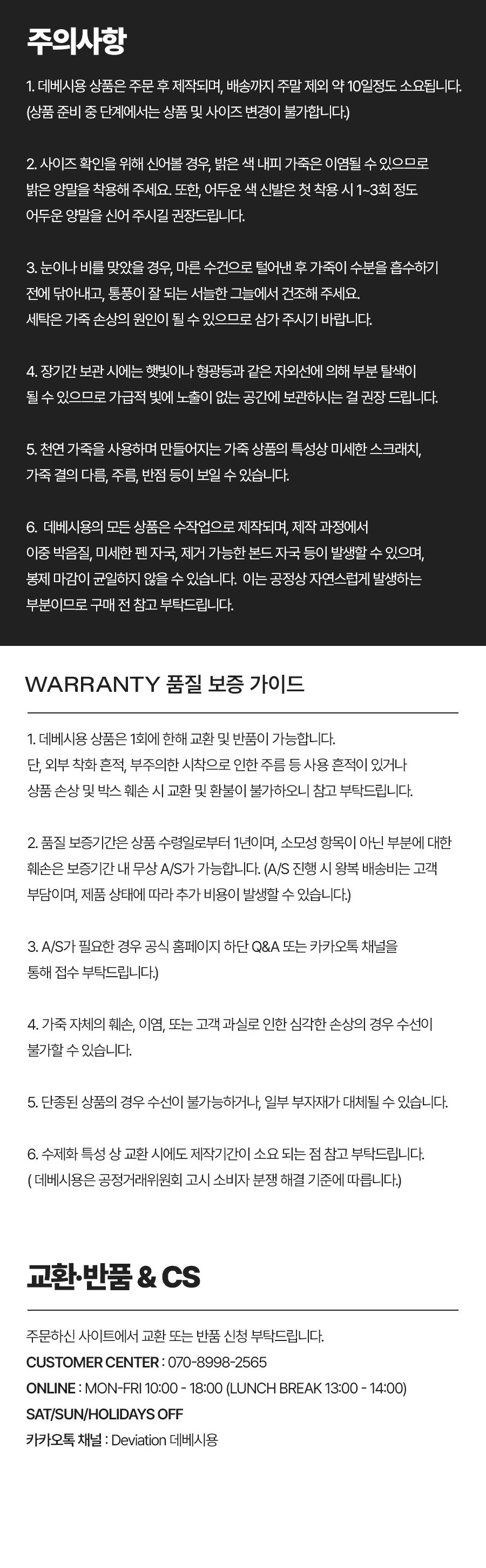 • 남성 : 정사이즈를 추천드립니다만, 발볼이 좁거나 발등이 낮다면 반 치수 다운이 더 잘 맞습니다.