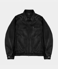 남여공용 포켓포인트 인조가죽 점퍼 (BLACK)