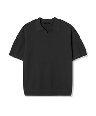 남성 썸머 오픈 카라 니트 (BLACK) (HB4SKA2)