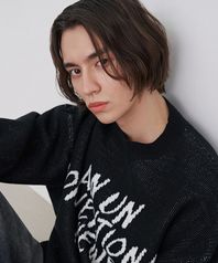 남성 자카드 레터링 오버핏 니트 (BLACK) (HBALK10)