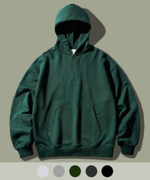 플로우 미니멀 하프집업 후드 다크그린 SJHD1427