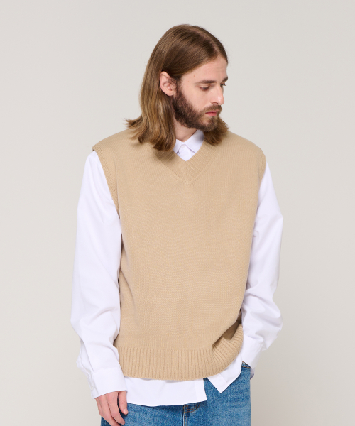 소프트 브이넥 니트 베스트 (베이지)