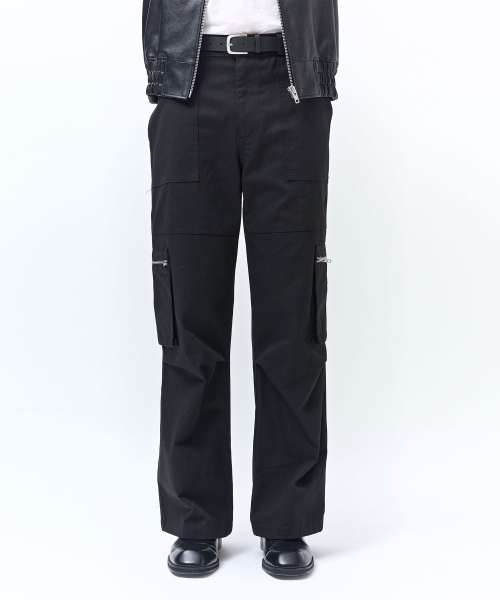 지퍼 포켓 와이드 카고 팬츠(블랙)